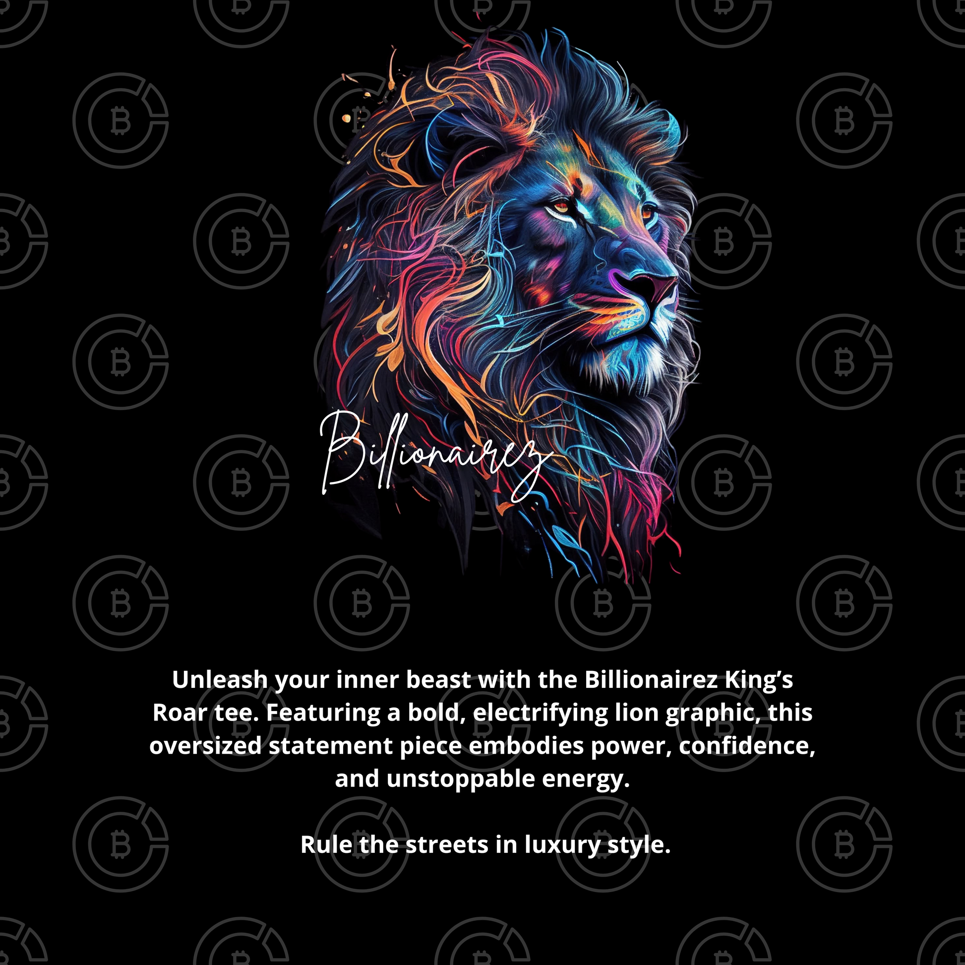 Unleash your inner beast with the Billionairez King’s Roar tee. Featuring a bold, electrifying lion graphic, this oversized statement piece embodies power, confidence, and unstoppable energy. Rule the streets in luxury style.