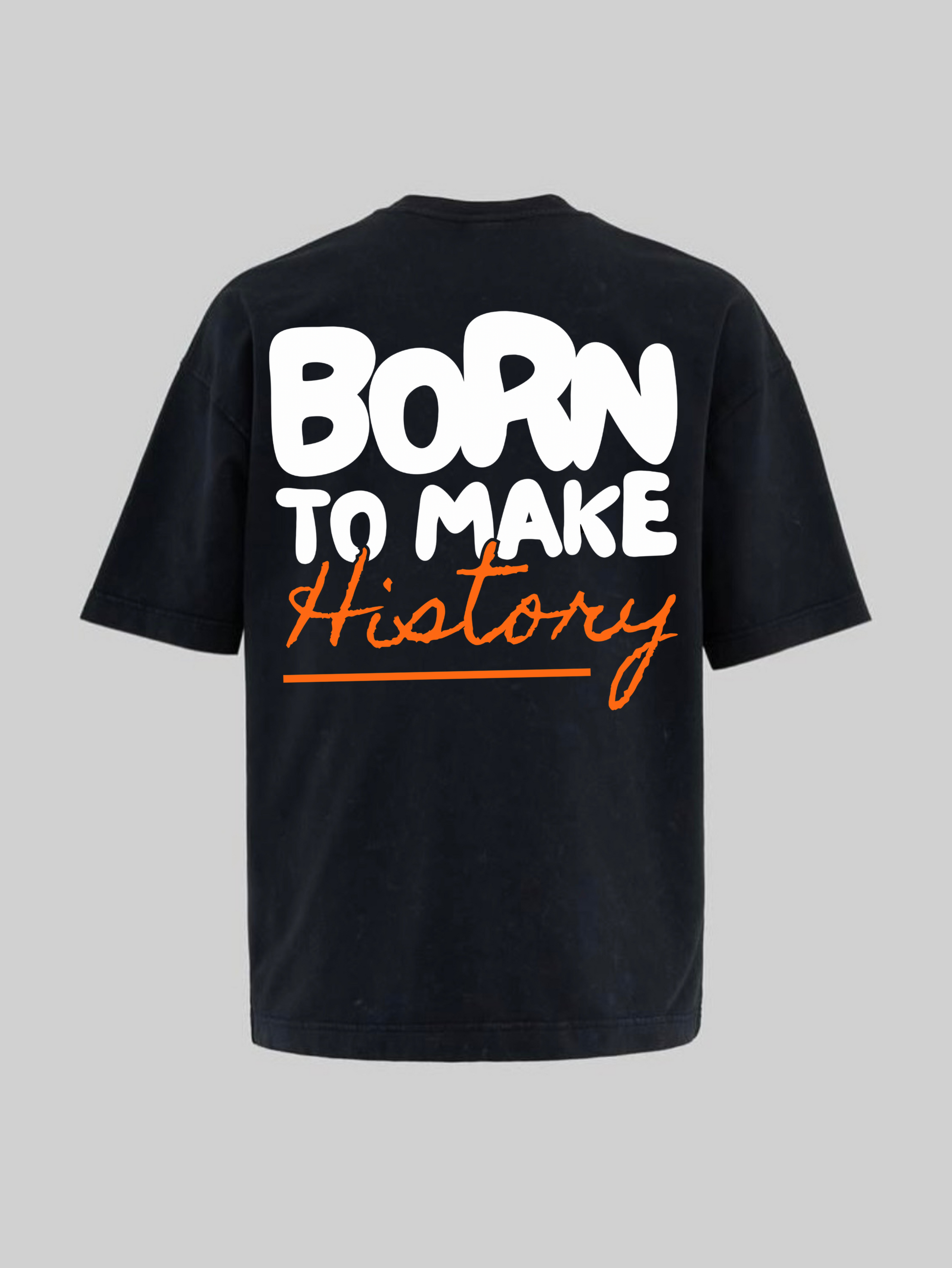 Unleash your inner game-changer with the Born to Make History Tee. This bold and inspiring design features the empowering statement “Born To Make History” in a unique font, with a vibrant orange touch.