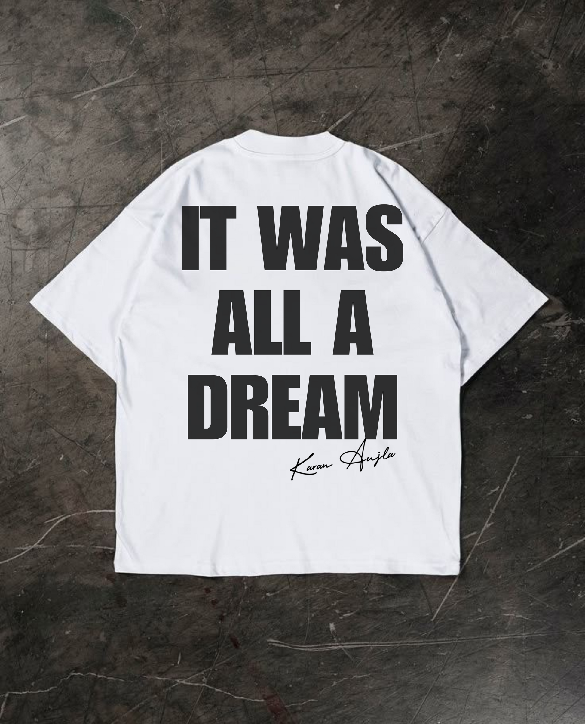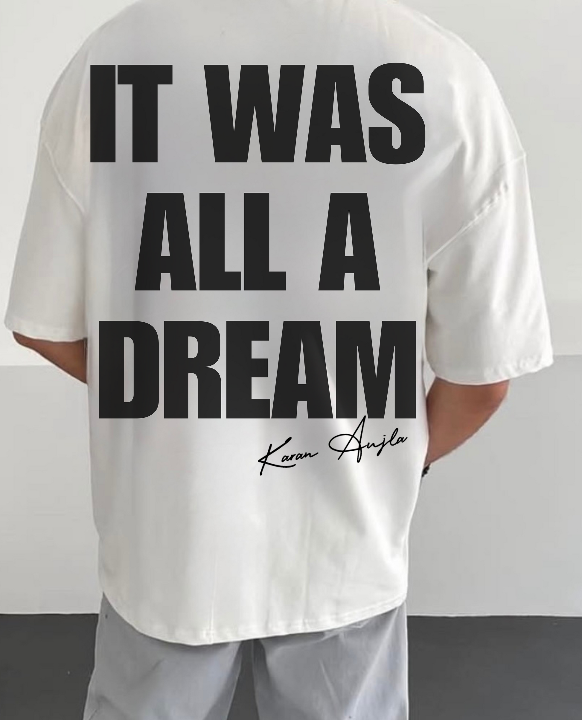 Bold, raw, and full of ambition – the Dream Manifest Tee pays tribute to dreamers who dared to hustle hard. Featuring the iconic “It Was All A Dream” lyric by Karan Aujla, this oversized tee is a salute to every self-made journey. Crafted in premium cotton for unbeatable comfort and statement appeal.