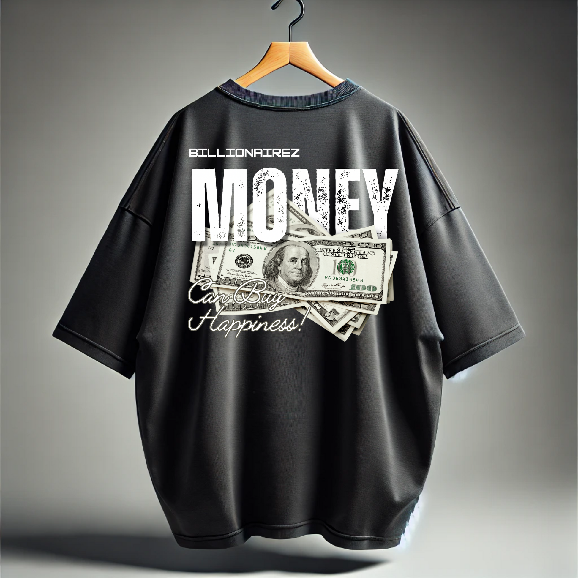 BillionaireZ ‘MONEY’ Oversized T-Shirt – Power, Luxury, and Ambition. Make a bold statement with the BillionaireZ ‘MONEY’ Oversized T-Shirt—a design that speaks for itself. Featuring a striking stack of hundred-dollar bills overlaid with the powerful phrase “MONEY Can Buy Happiness!”, this tee embodies wealth, success, and the ultimate lifestyle. Crafted for trendsetters and go-getters, this oversized fit delivers next-level comfort and confidence. Whether you hustle hard or live lavishly, this design reminds you that abundance is a mindset—and those who dare to dream big, wear it loud. BillionaireZ – Wear Your Wealth. Own Your Ambition.