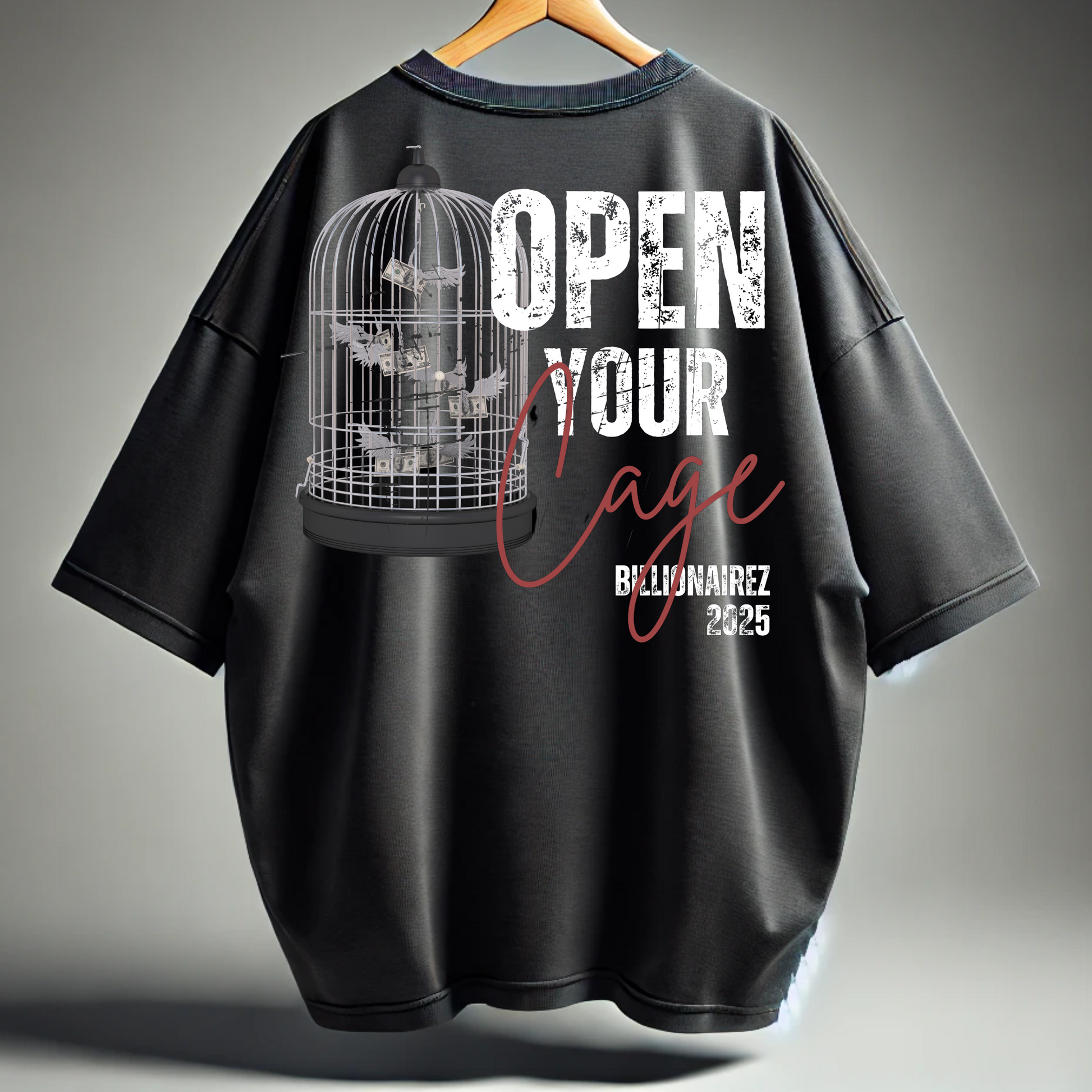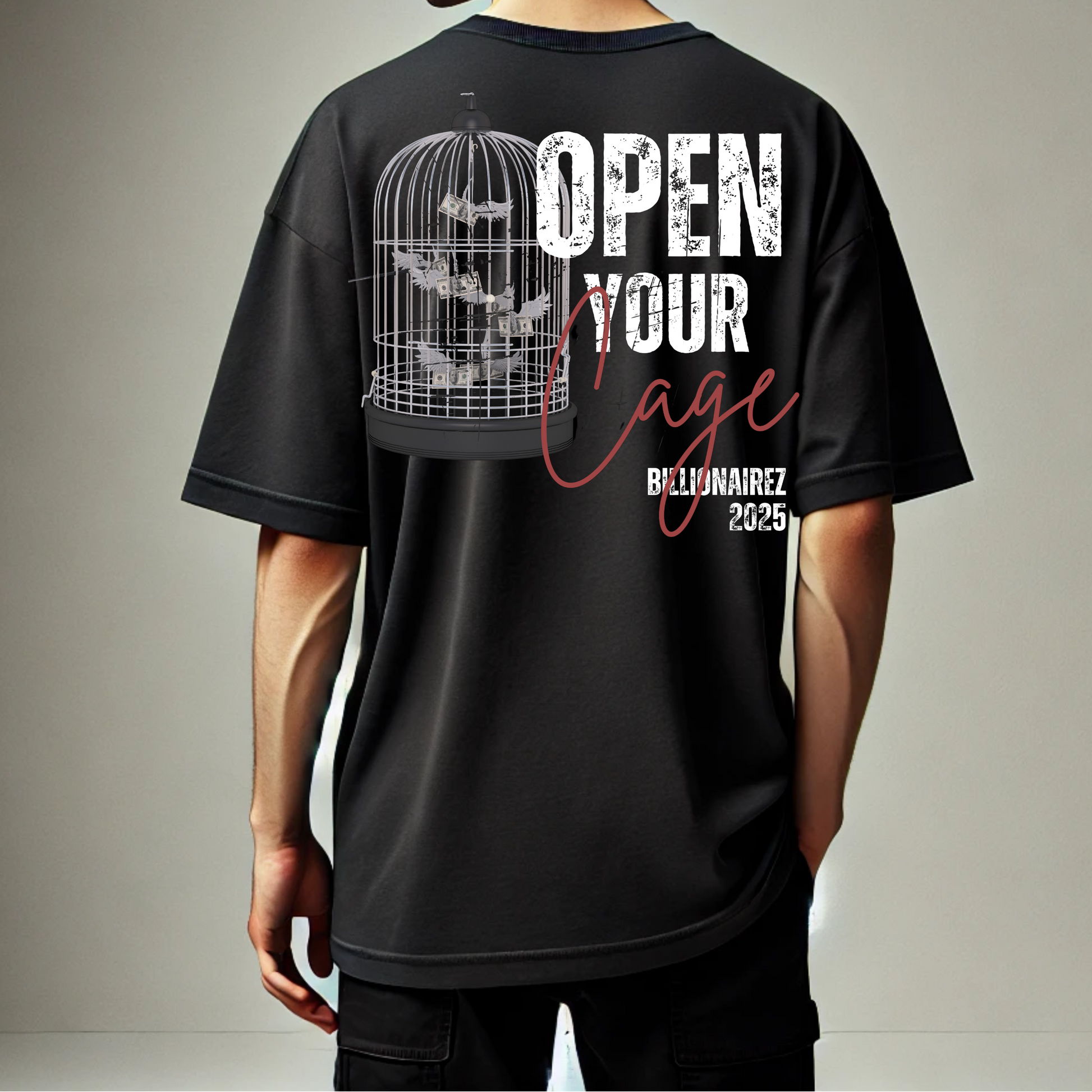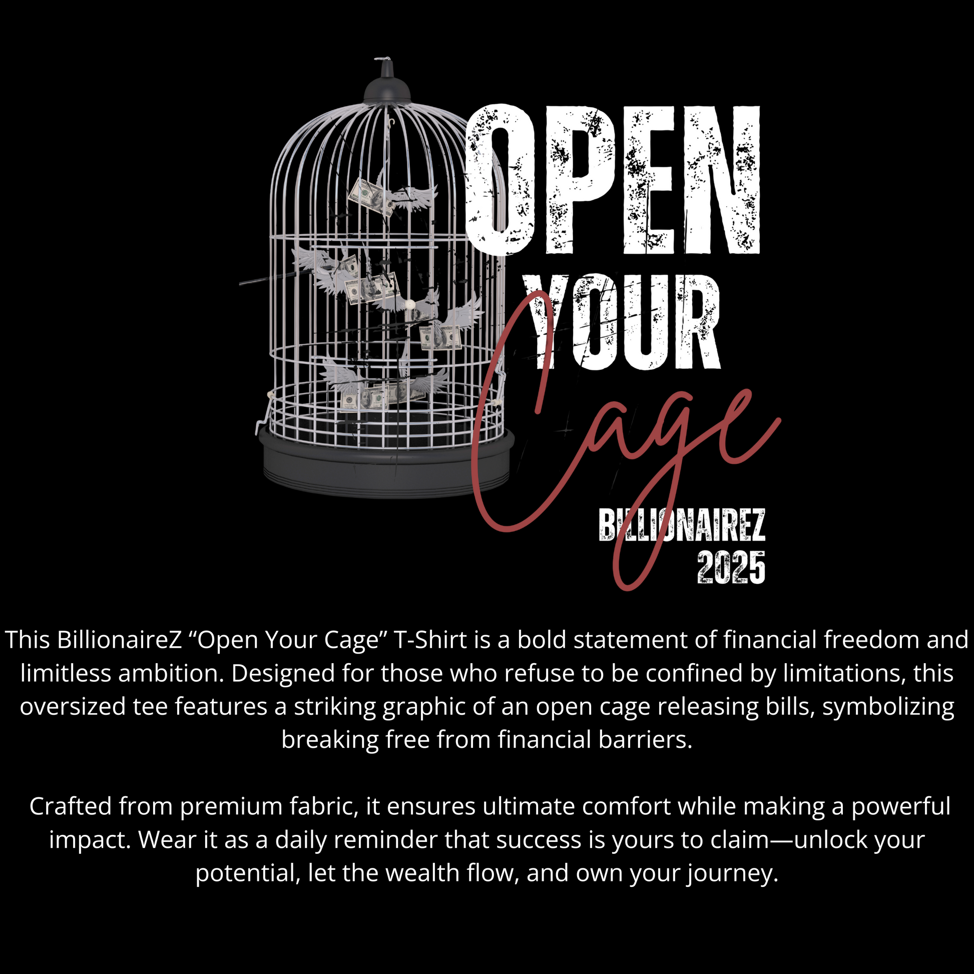 This BillionaireZ “Open Your Cage” T-Shirt is a bold statement of financial freedom and limitless ambition. Designed for those who refuse to be confined by limitations, this oversized tee features a striking graphic of an open cage releasing bills, symbolizing breaking free from financial barriers.