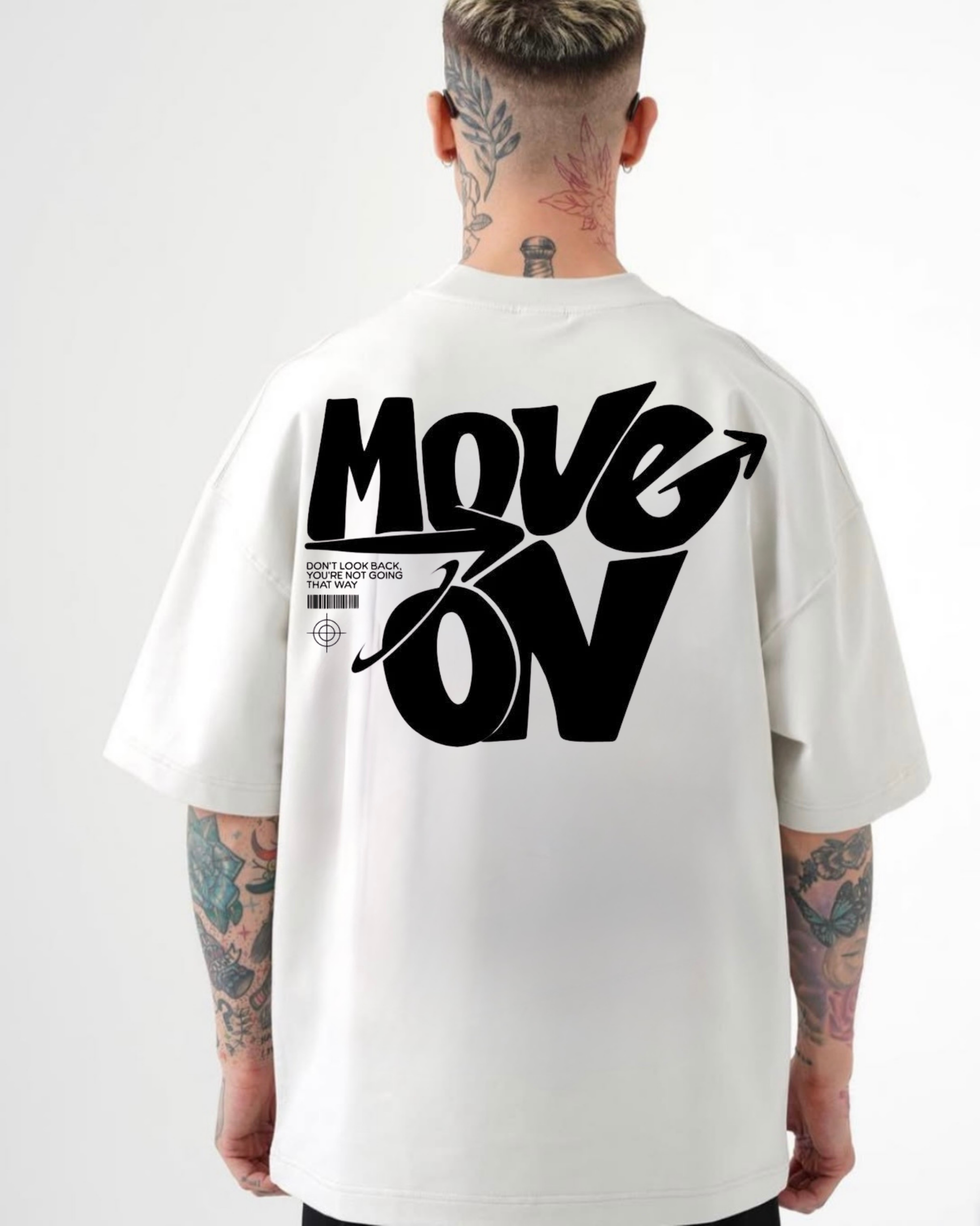 Never look back; keep moving forward. The Move On Oversized T-shirt is designed for those who embrace progress and leave the past behind. With bold graphic lettering on the back, this tee sends a powerful message that resonates with anyone ready to move forward in life.