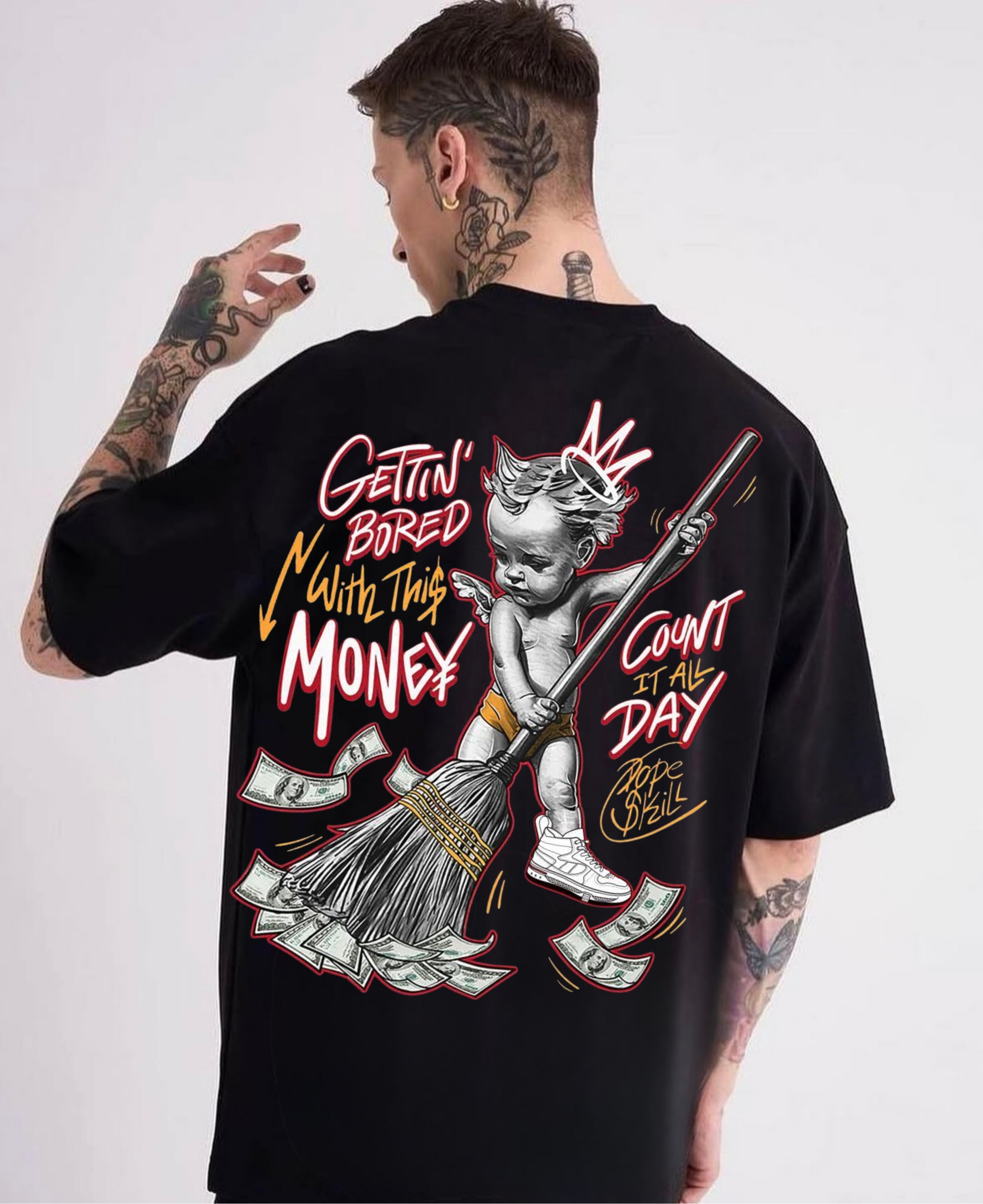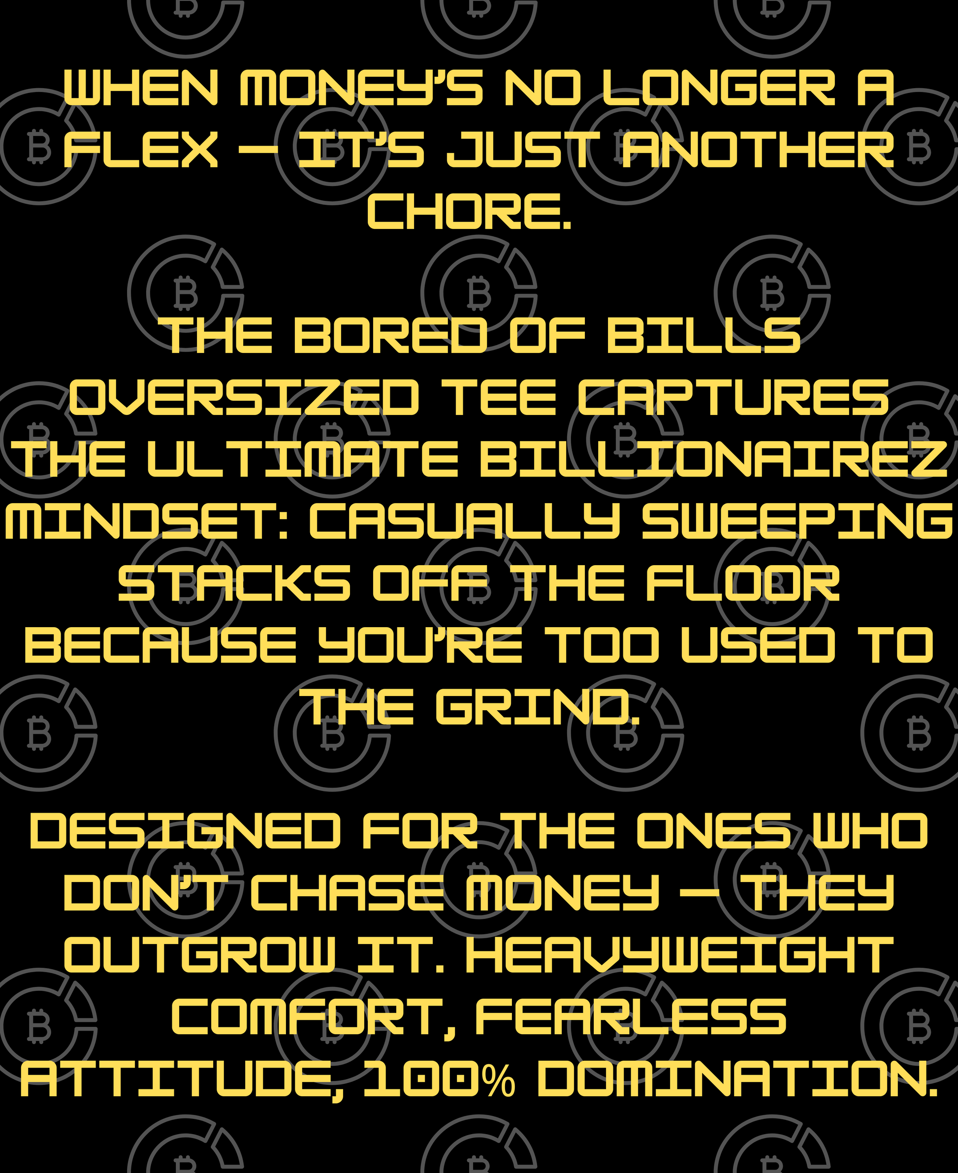 When money’s no longer a flex — it’s just another chore. The Bored of Bills Oversized Tee captures the ultimate BillionaireZ mindset: casually sweeping stacks off the floor because you’re too used to the grind.