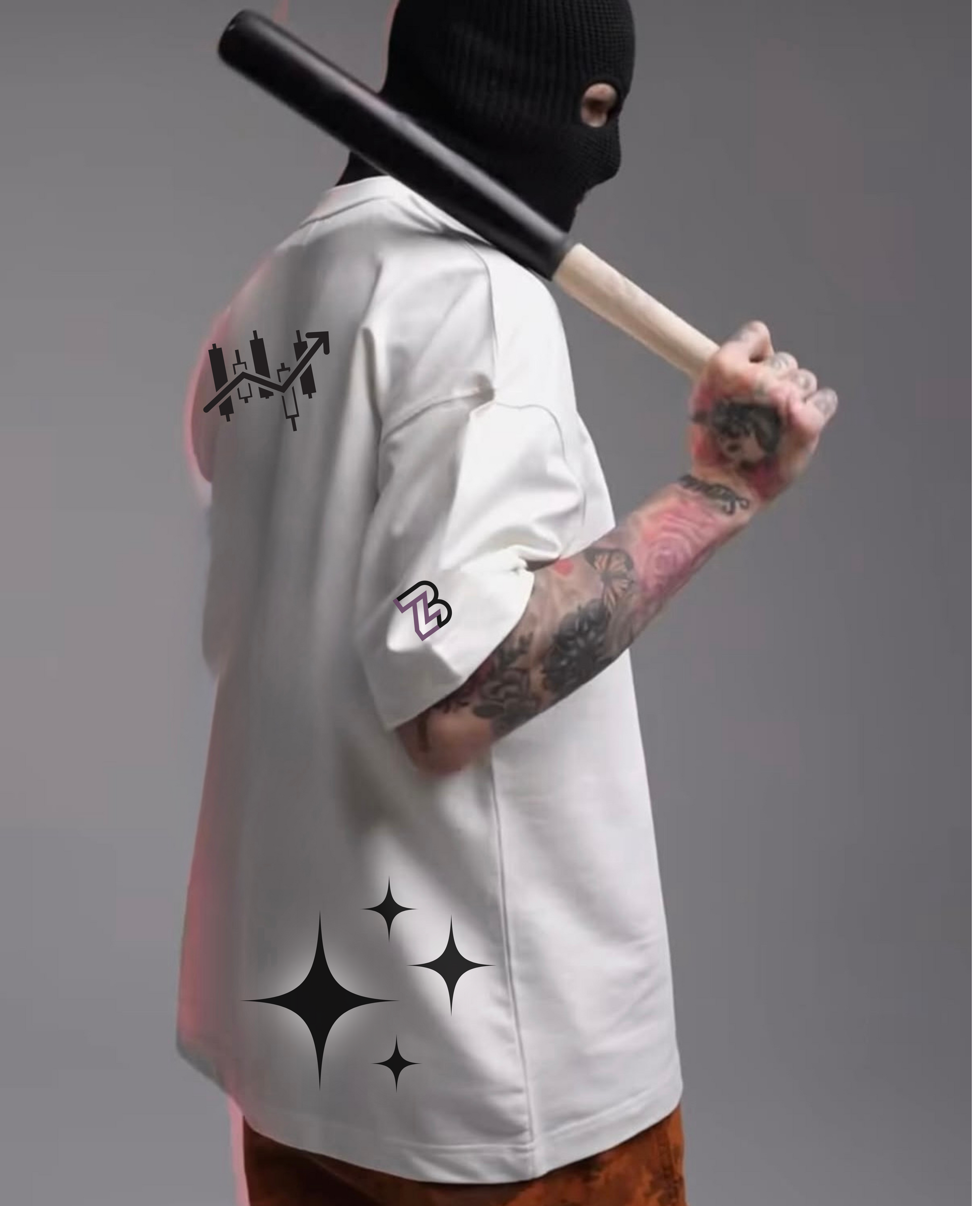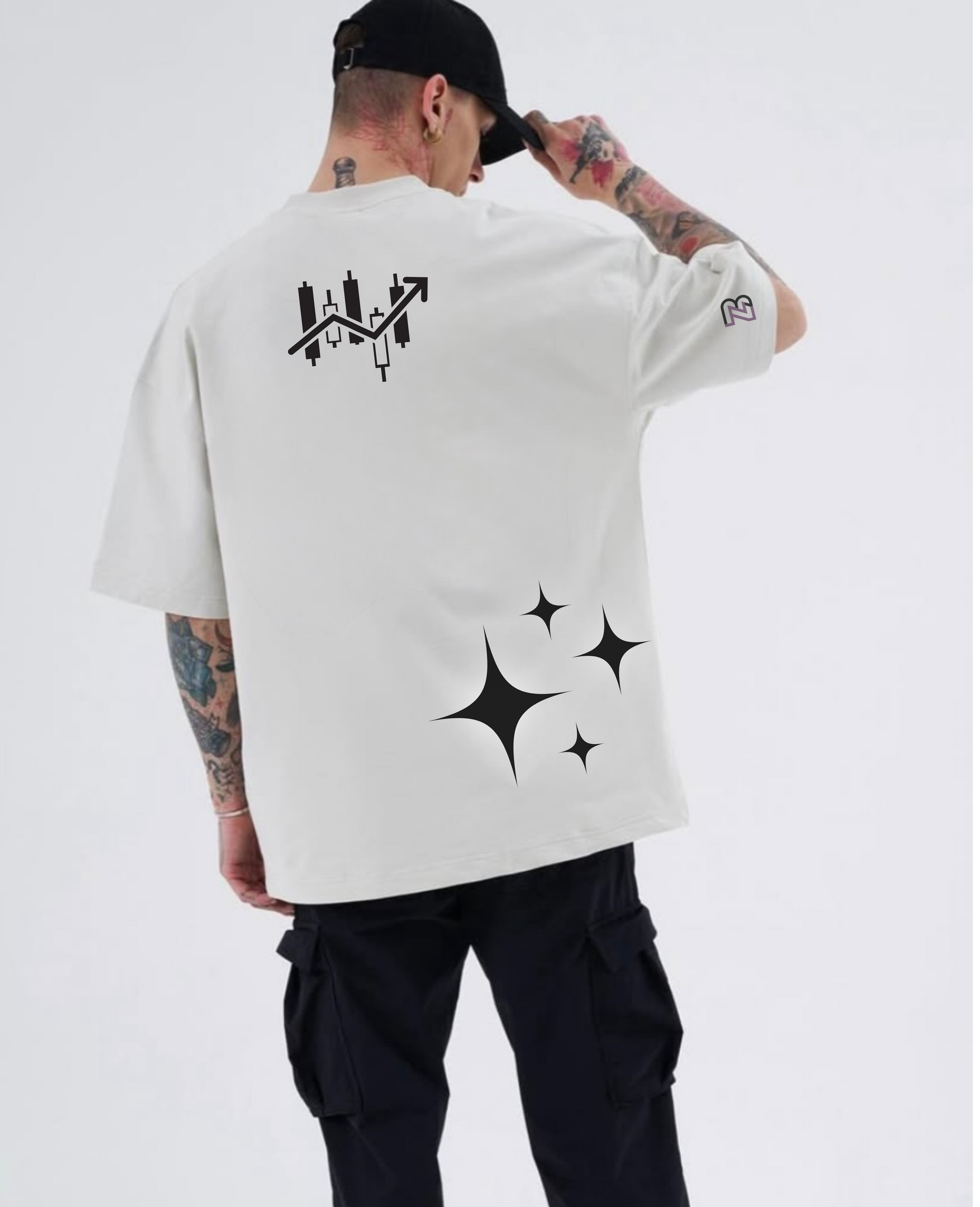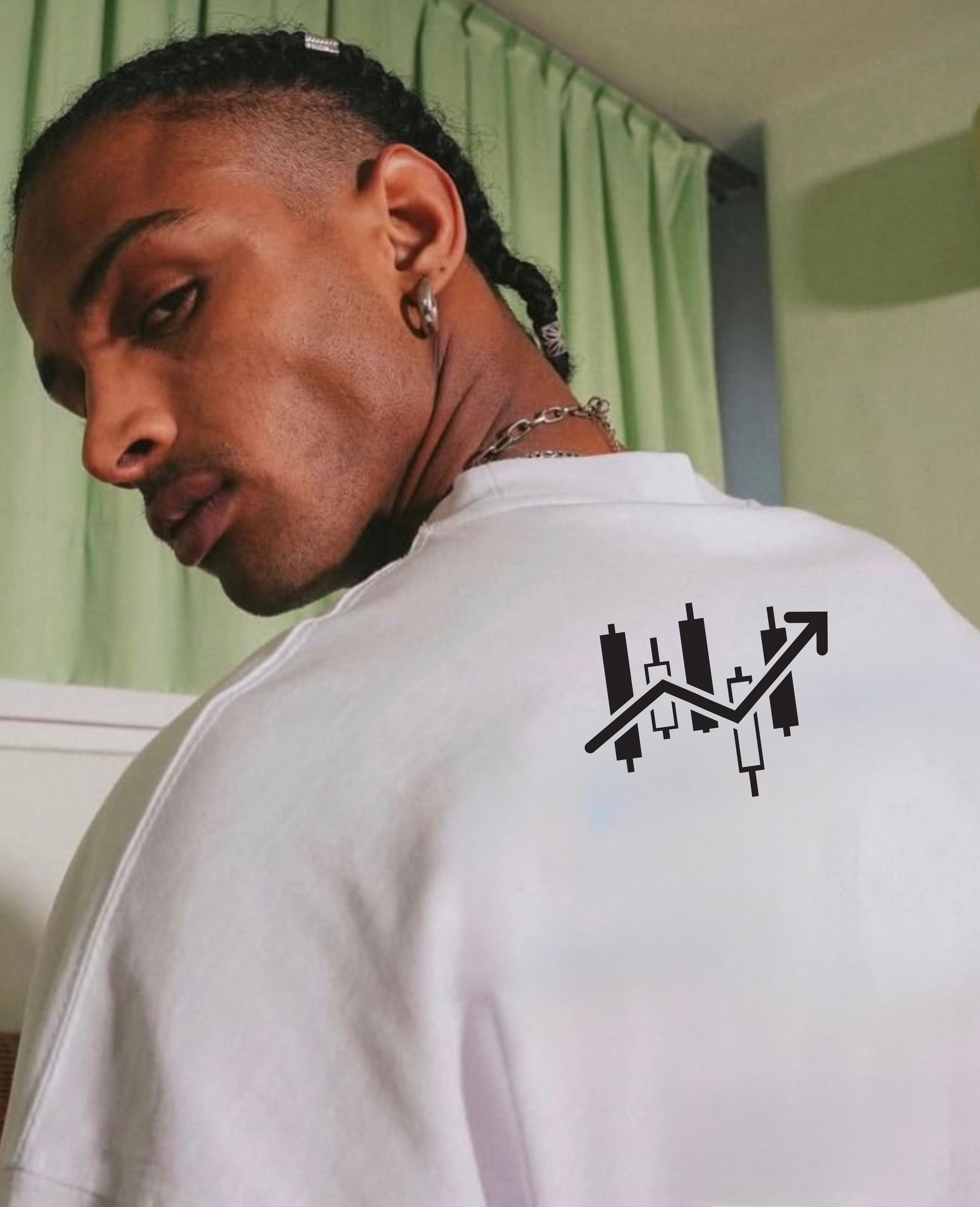 Minimal but mighty — the Bullish Spark tee speaks volumes in silence. Featuring a clean white base with a sharp candlestick chart and rising arrow on the upper back, it symbolizes growth, hustle, and upward mindset. Paired with star-like spark graphics on the lower back, it’s a nod to shining under pressure and moving with clarity and precision.