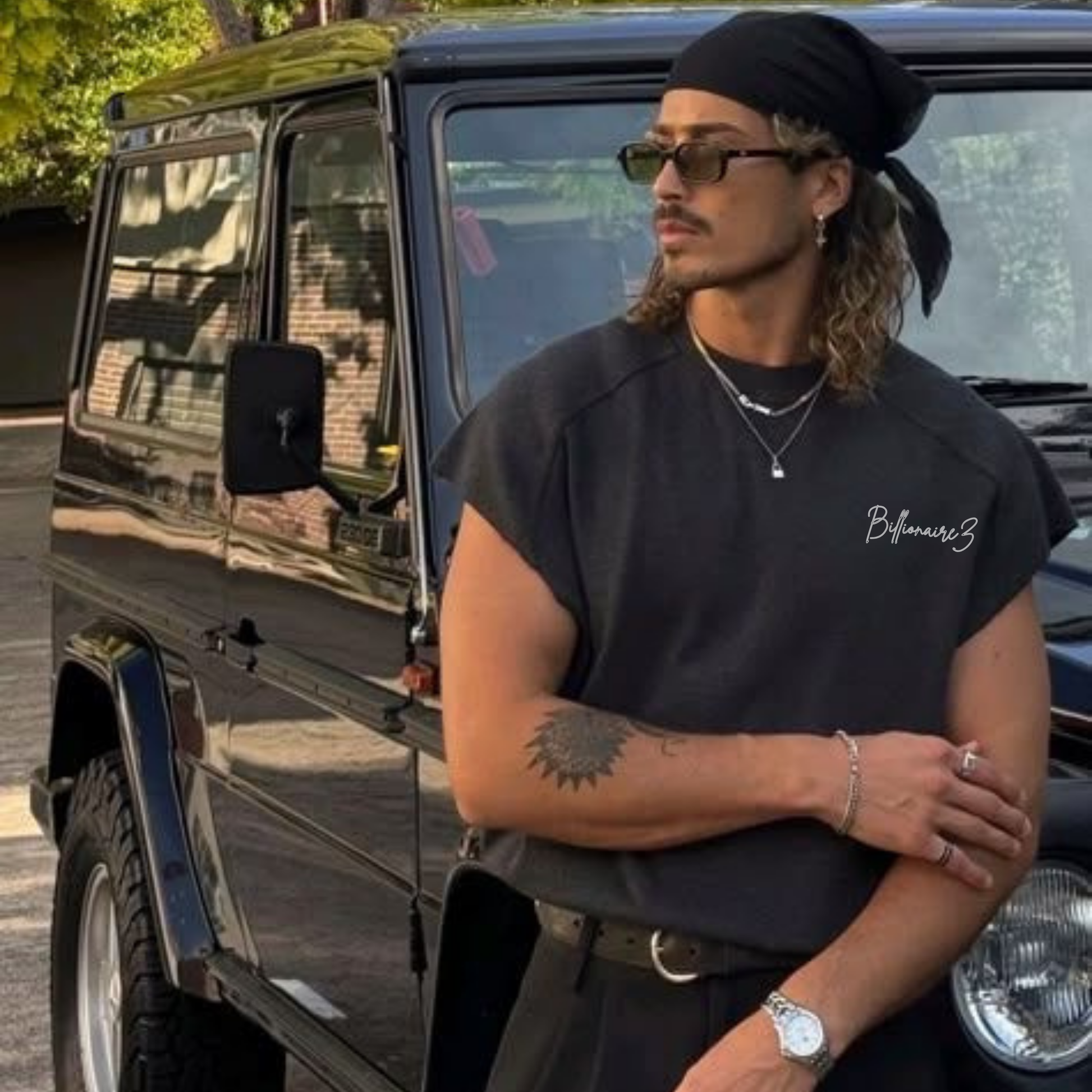 Command the spotlight with the All Eyez On Me Oversized Muscle Tee from BillionaireZ. Crafted in premium, breathable cotton, this bold black sleeveless design blends streetwear swagger with effortless comfort. The front features a sleek minimalist BillionaireZ logo, while the back makes a fearless statement with the oversized “ALL EYEZ ON ME” graphic—turning every street into your runway. Perfect for layering or rocking solo, this tee is built for those who own every room they walk into.