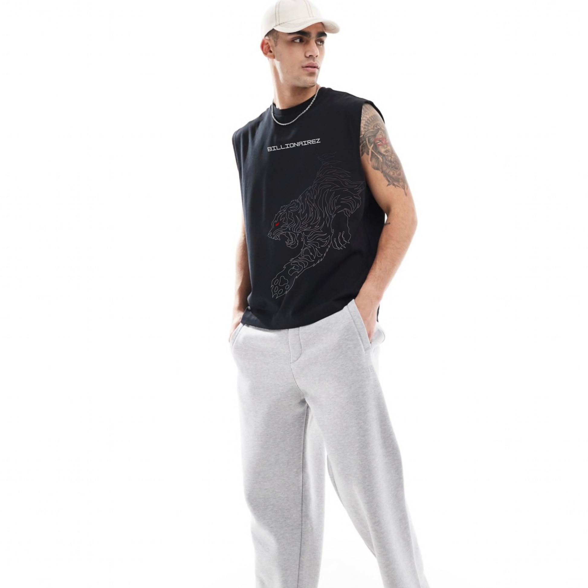 Unleash your inner beast with the Young Wild & Free Sleeveless Oversized Tee from BillionaireZ. Designed for those who live unapologetically, this tee features: